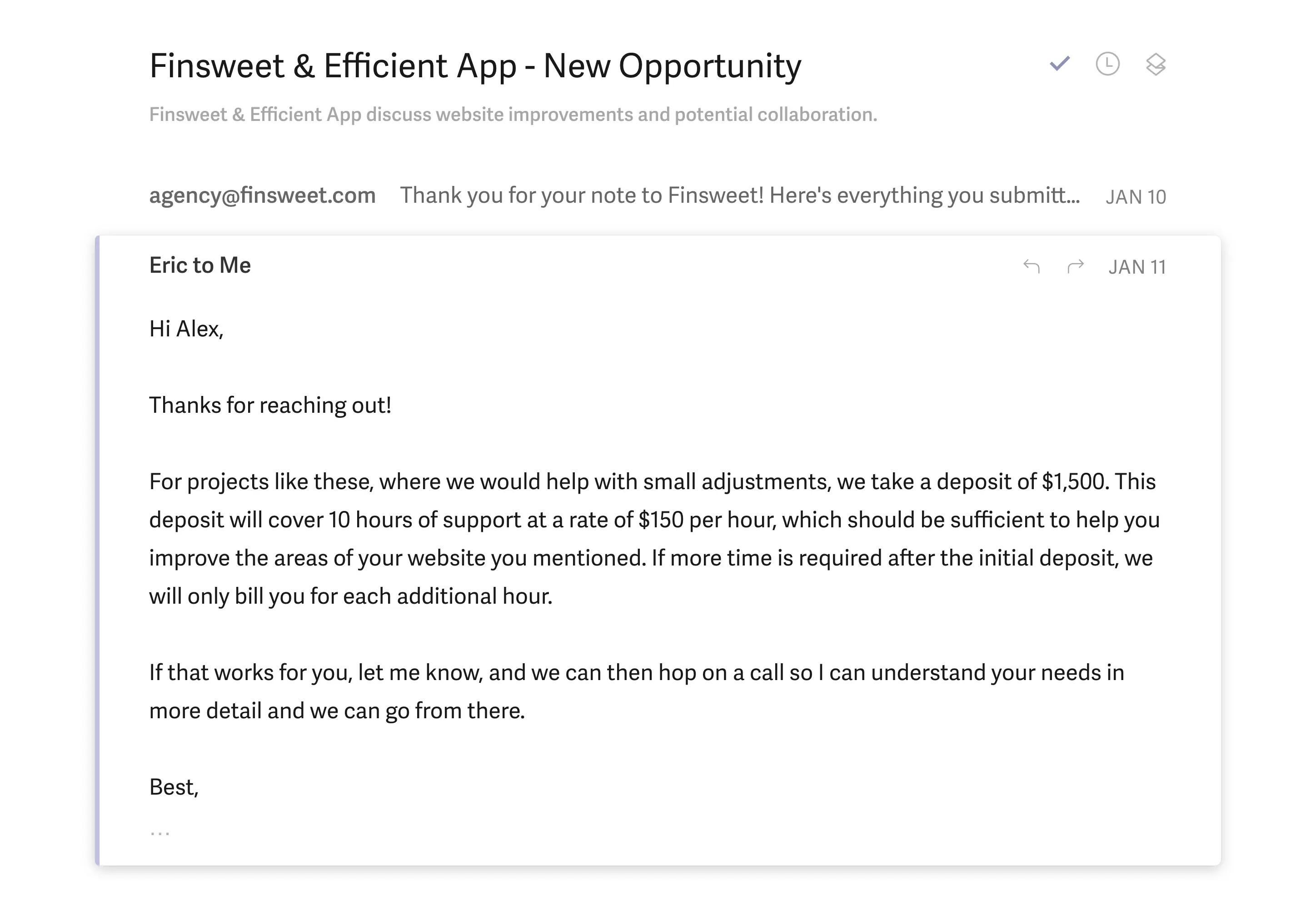 It also seems that Superhuman takes in far more context from the entire conversation than Spark does, but that also makes sense because there is a cost associated with this, and since Superhuman is a premium product, they can spend more on AI tokens (giving the prompt more context).