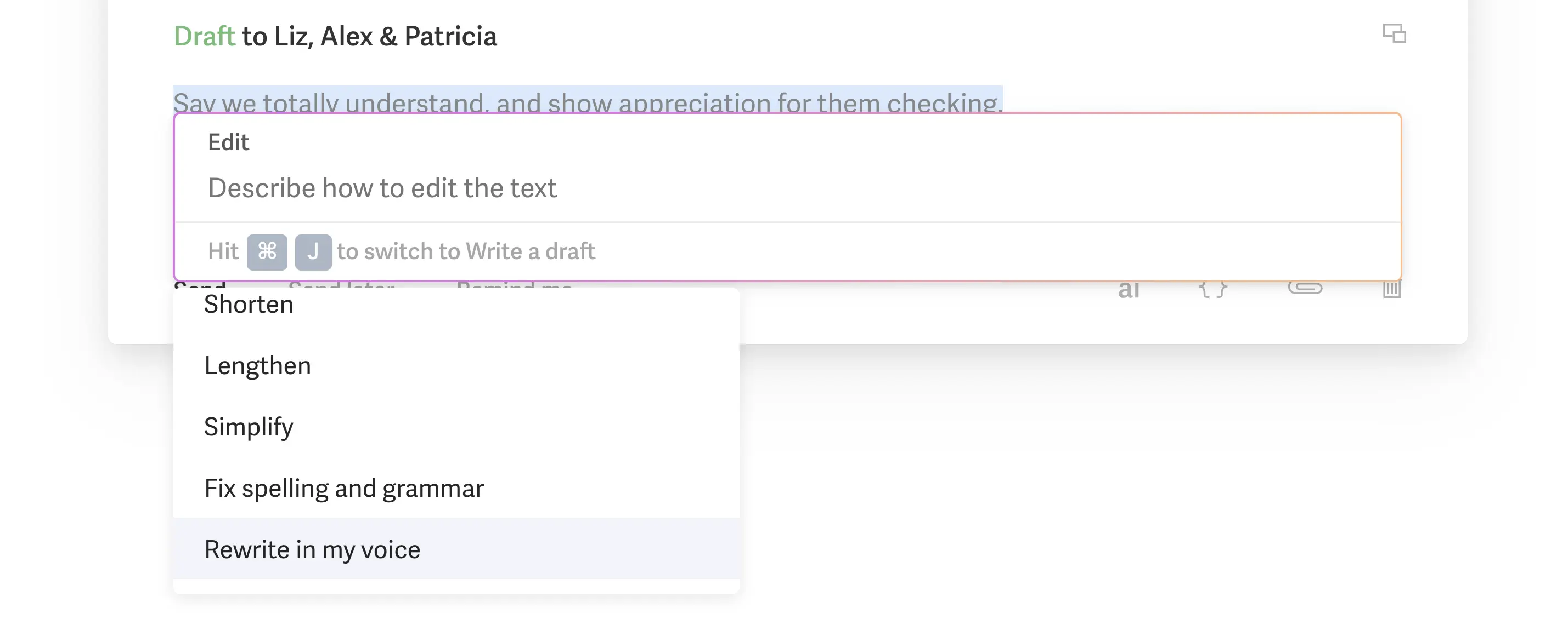 With Superhuman, write down your thoughts and ask it to "rewrite in your voice" which is learns from previous emails 🤯. I think it's important to still sound "like you" in emails, and I found that Superhuman even pulls out emoji's that I typically use when using this feature!