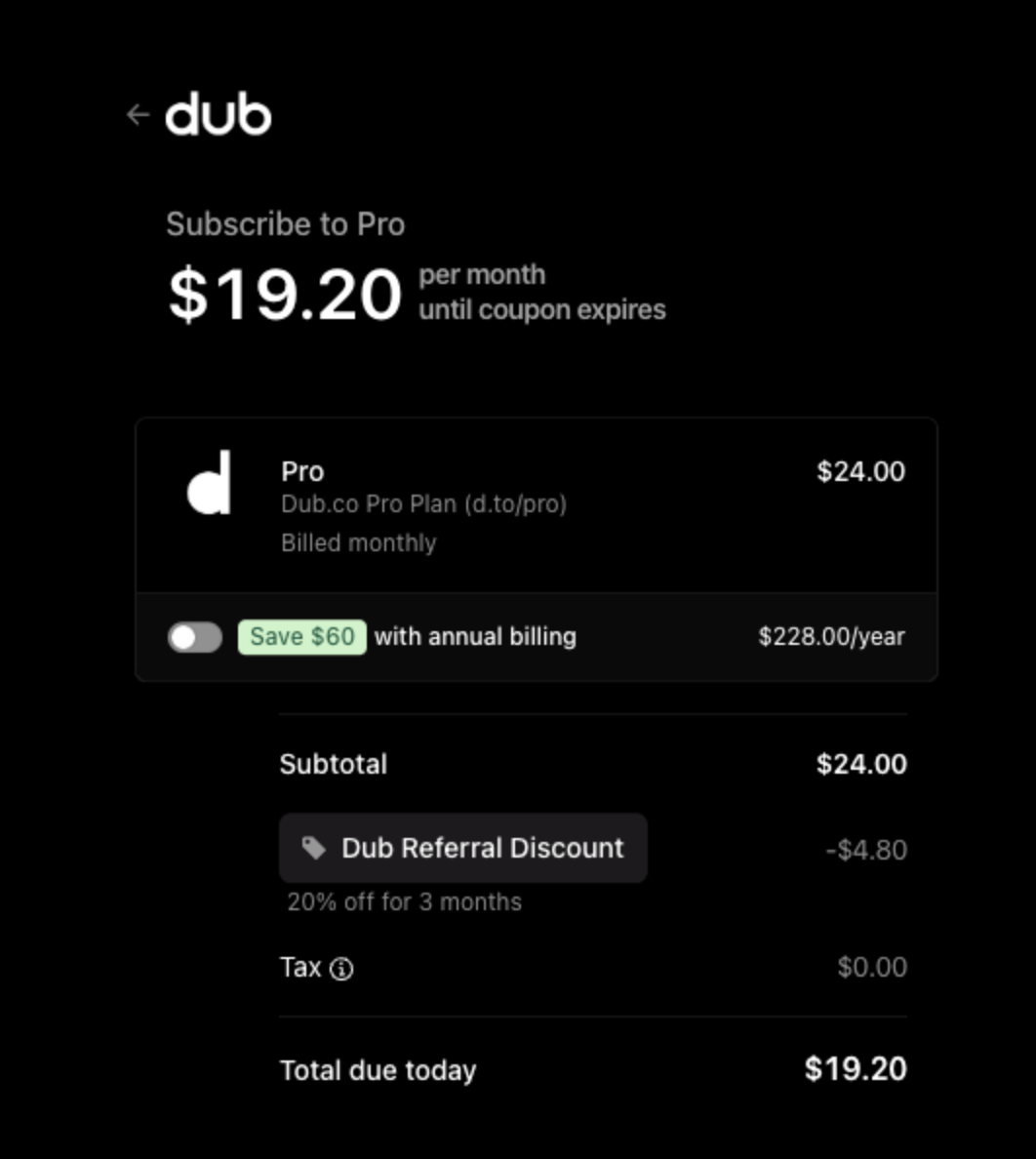 You can claim 20% off your first 3 months of Dub Partners (automatically applied at checkout).